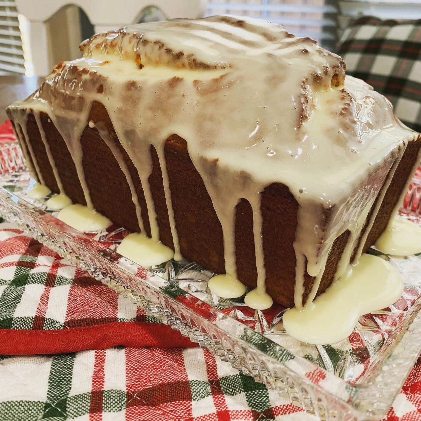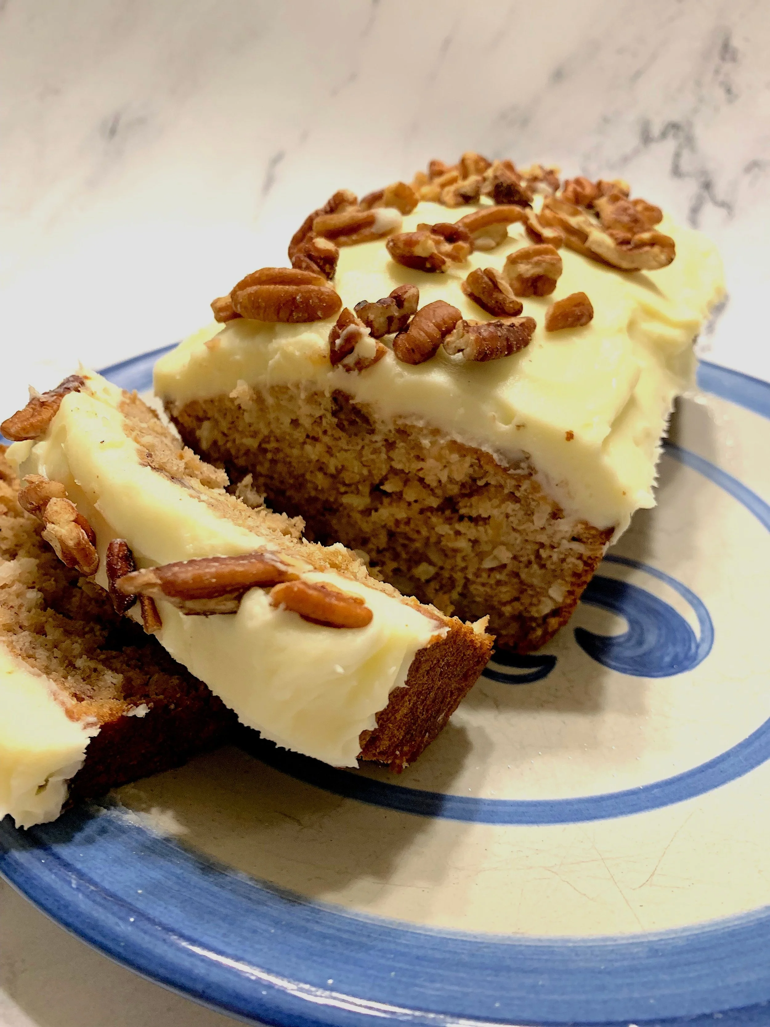 A classic Southern bread with pineapple, banana, coconut, and toasted pecans topped with a cream cheese frosting